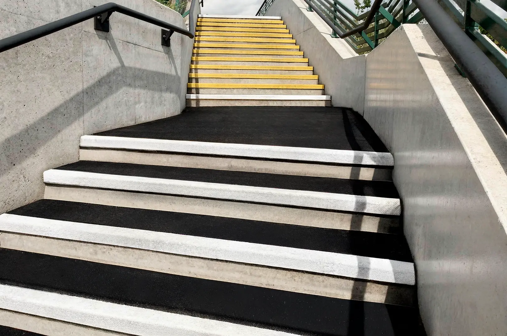 Cintas autoadheribles de alta fricción para escalones, bordes de plataformas y zonas inclinadas.